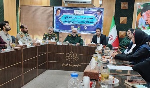 در پایان این نشست از پوستر برنامههای شاخص استان خوزستان در هفته دفاع مقدس رونمایی شد.